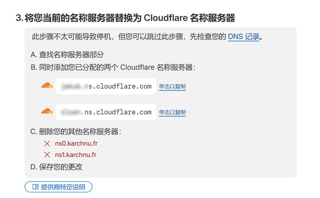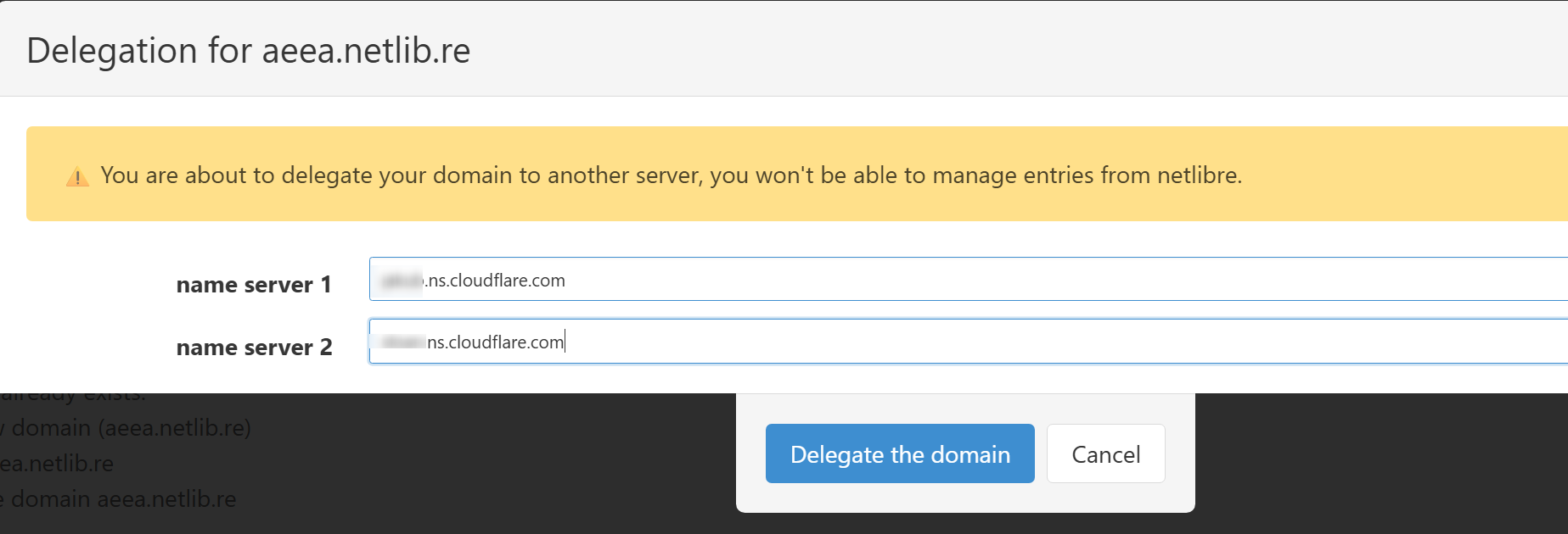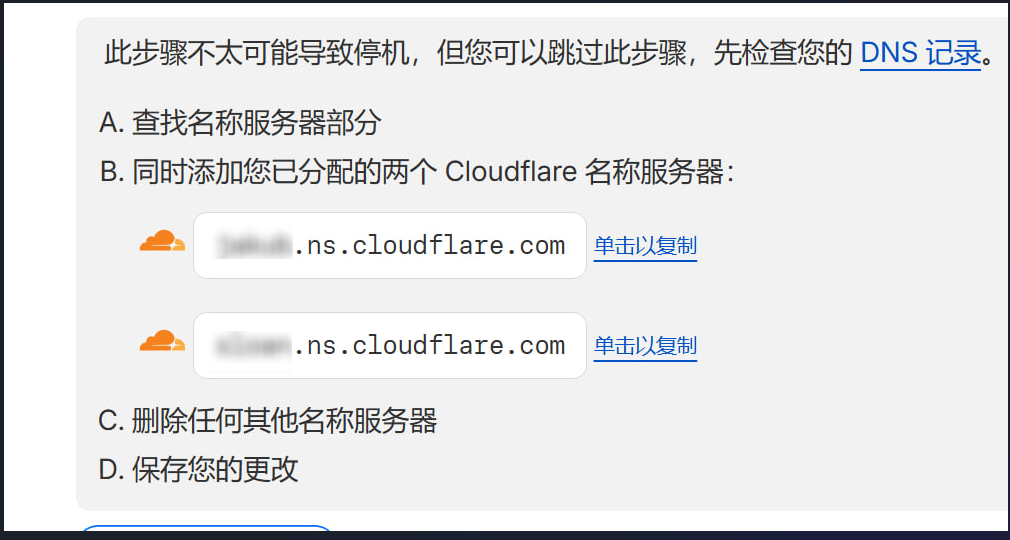 首先将cloudflare的NS名称服务器添加到Netlib.re中